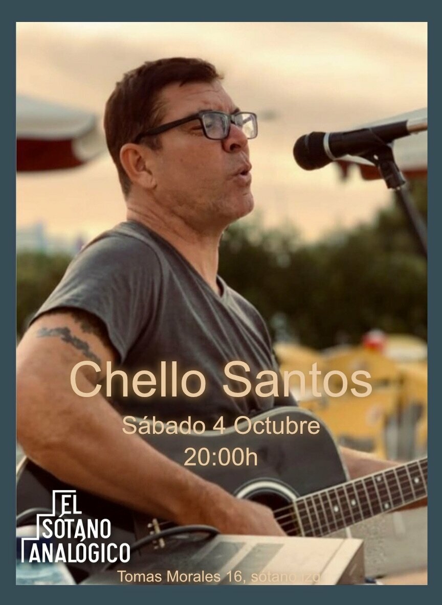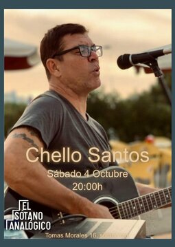 Chello Santos es un músico: guitarrista y cantautor, que estará interpretando sus canciones propias de los últimos 20 años que van del Rock'n'Roll, Baladas y Reggaes a los sonidos más introspectivos y viscerales.