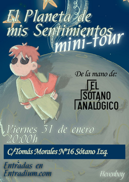 En este evento voy a tocar el disco que publiqué el 13 de diciembre de 2024 "El Planeta de Mis Sentimientos", junto a algunos otros temas que he sacado durante el periodo de tiempo que llevo sacando música por mi cuenta ^^.